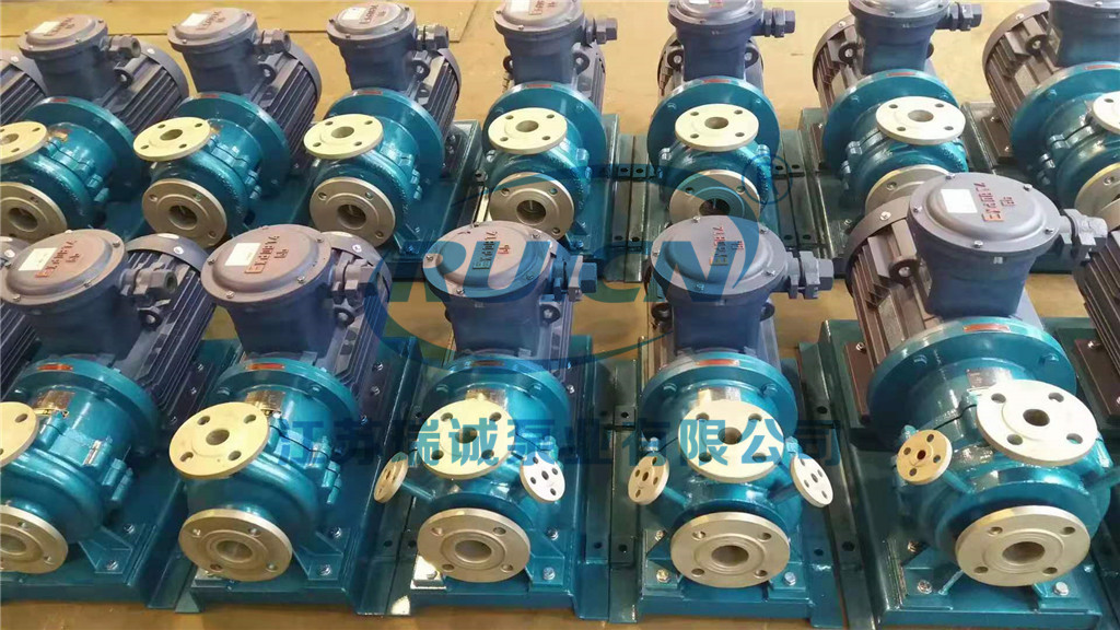 2、當(dāng)CQB磁力泵抽吸液面高于泵軸心線時,磁力驅(qū)動泵起動前打開吸入管道閥門即可,若抽吸液面低于泵軸心線時,管道需配備底閥。